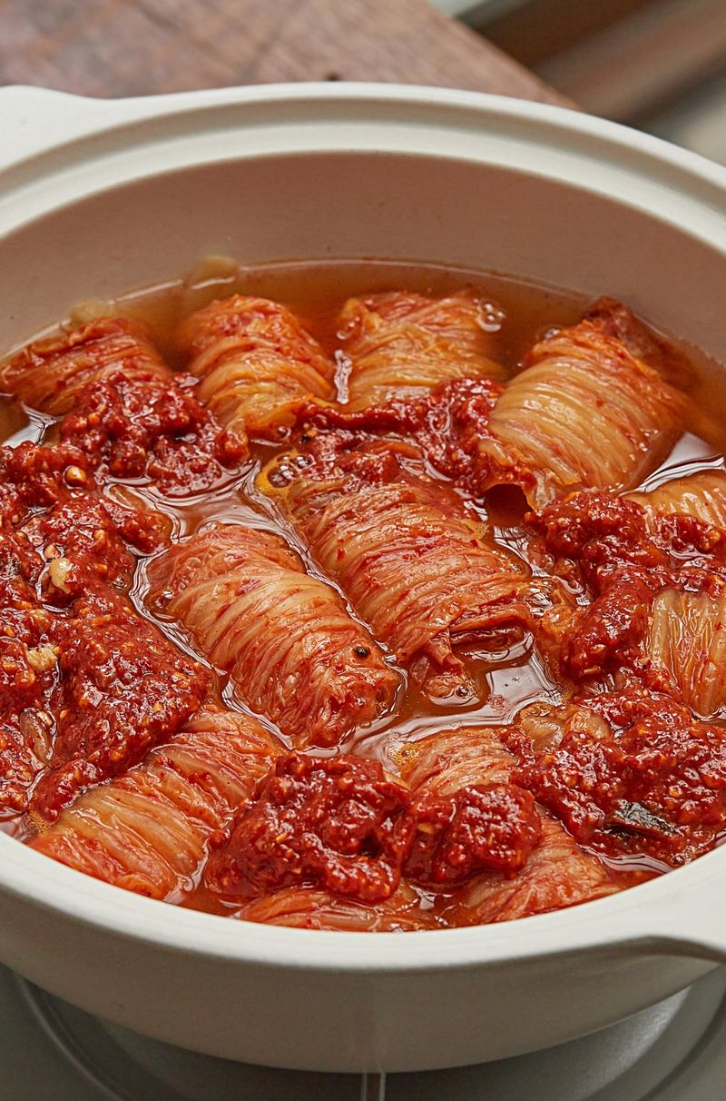 두부와 김치의 최고의 조합을 자랑하는 김치말이두부찜! 고소한 두부와 매콤한 김치만 넣어 자작하게 끓여내면 다른 반찬엔 눈길도 안 가요! 돼지고기나 참치가 없어도 감칠맛이 일품이에요.