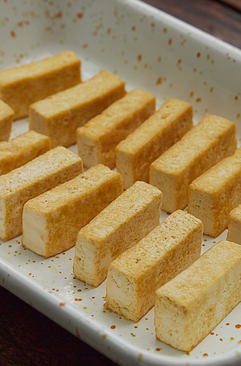 칼칼한 양념이 골고루 밴 두부조림을 흰밥에 올려 먹으면 걱정 없이 한 그릇 싹 비우게 될 거예요! 📝TIP 1. 두부 위에 양념 국물을 끼얹어 가며 조려주면 훨씬 양념이 잘 밴 두부조림을 만들 수 있어요. 📝TIP 2. 한층 더 매콤하게 즐기고 싶을 땐 청양고추를 올려 마무리해도 좋아요.