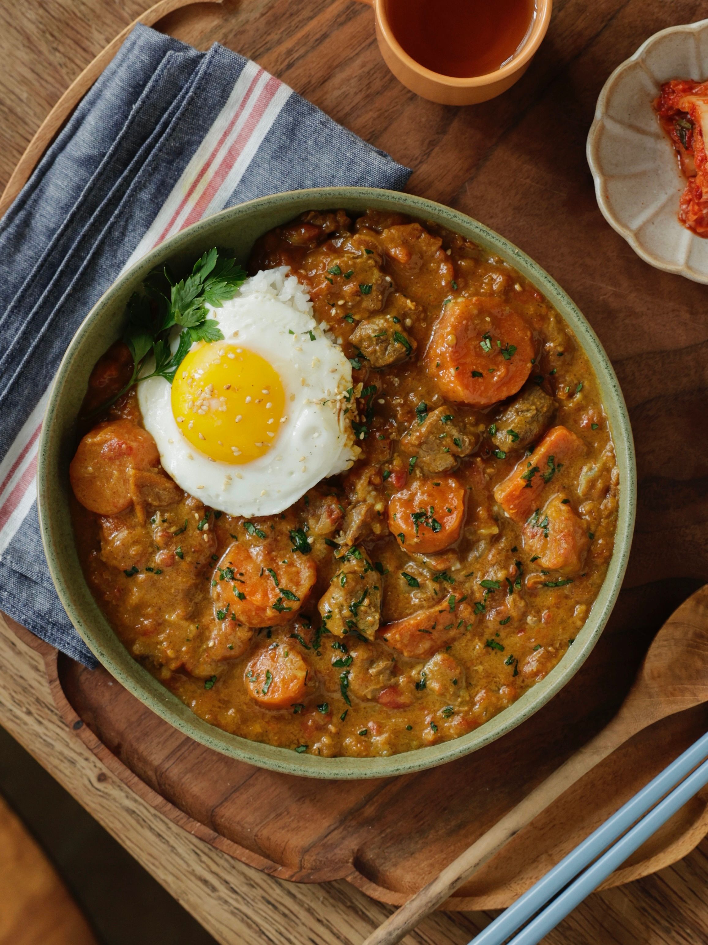 재료만 준비해 밥솥에 넣고 쪄 내기만 하면 완성! 요즘 핫한 밥통 카레를 아시나요? 계속 저어줄 필요 없이 간단하게 맛있는 카레를 만들 수 있어 인기가 좋아요. 고기도 훨씬 부드럽고 국물의 깊은 풍미가 좋답니다!