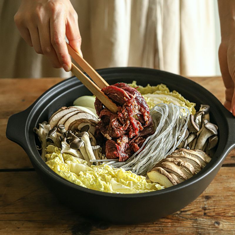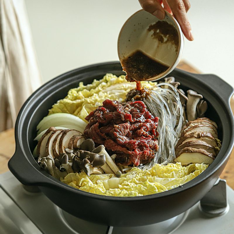 아이들도 잘 먹어 온 가족이 즐기기 좋은 불고기 전골로 마음까지 따뜻한 저녁 시간을 보내보세요. 📝TIP 1. 당면은 국물을 빨아들이기 때문에 먹을 만큼만 준비해 끓여주시는 것이 좋아요. 📝TIP 2. 불고기가 뭉치지 않게 풀어주면서 끓여주시고, 이때 생기는 거품을 걷어주면 국물이 깔끔해요.