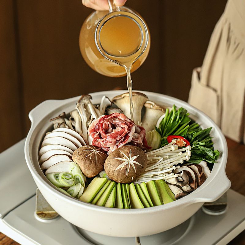 전골이 보글보글 끓는 식탁은 소리만으로도 따뜻함이 느껴져요. 다 함께 호호~ 만두를 식혀가며 먹을 수 있는 만두전골! 만두만 있으면 냉장고 속 기본 재료들만 꺼내 풍성한 만두전골을 만들어 보세요.