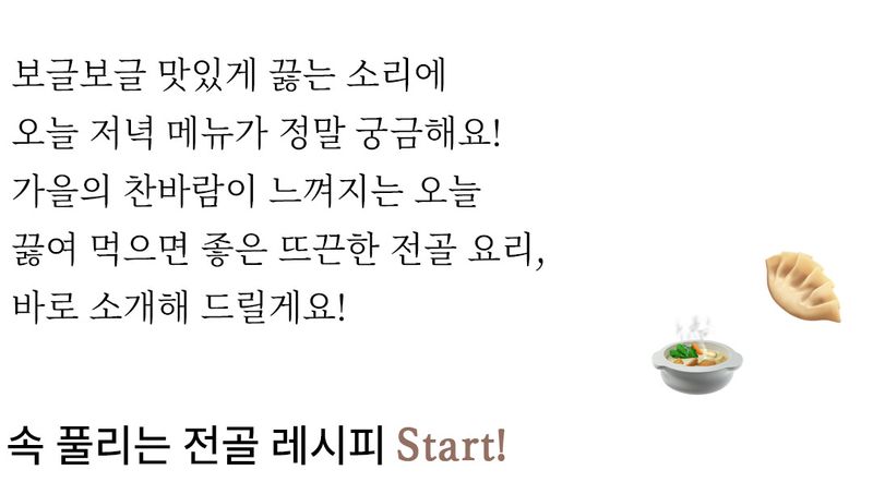 코 끝이 시려지는 퇴근길에 집에서 만두전골 한 그릇 먹으면 마음까지 훈훈해질 거예요~ 📝TIP 1. 사골육수 대신 멸치육수를 넣으면 맑고 깔끔한 국물로 즐기실 수 있어요. 📝TIP 2. 기호에 따라 마지막에 청양고추를 넣어 매운맛을 더해도 좋아요.