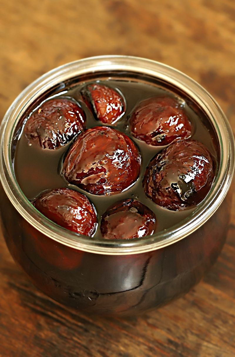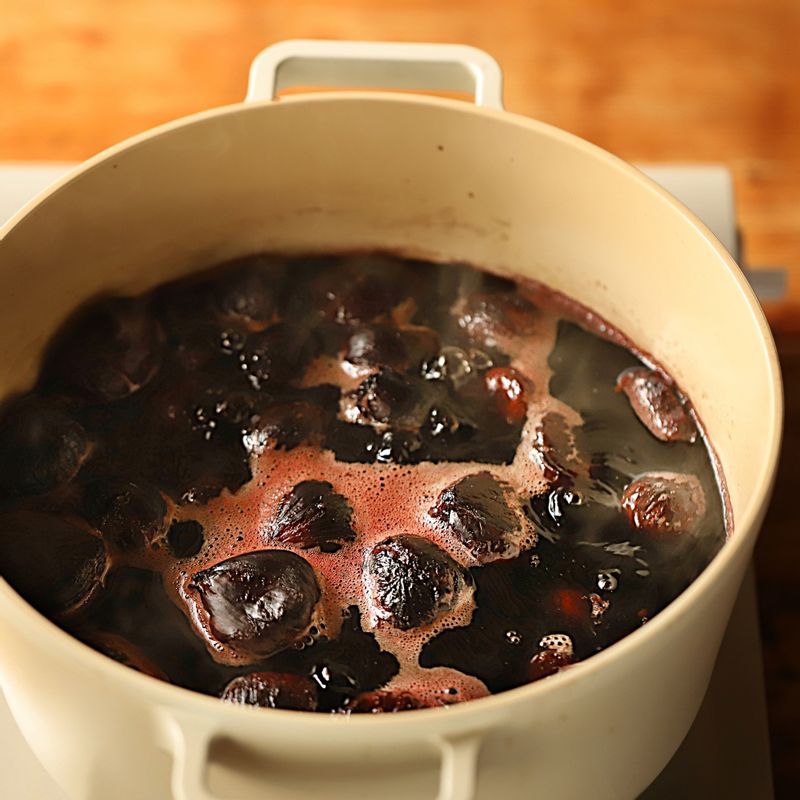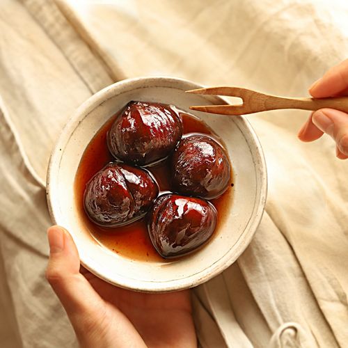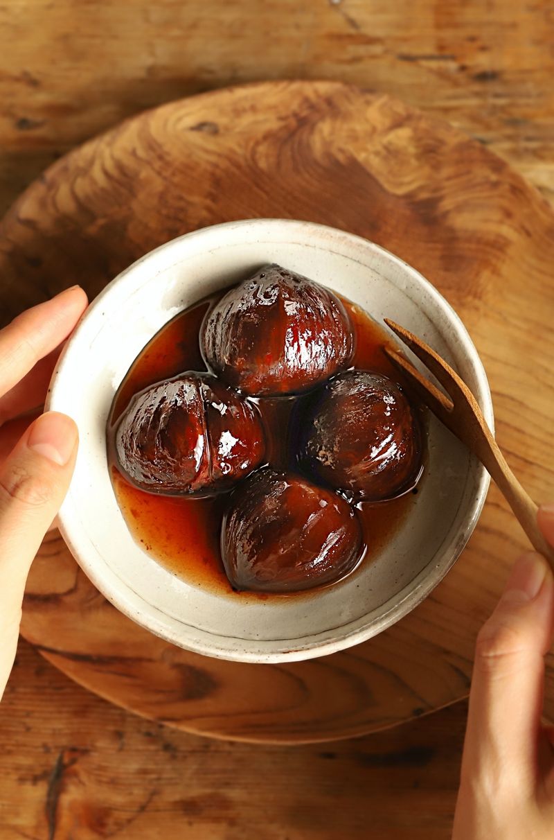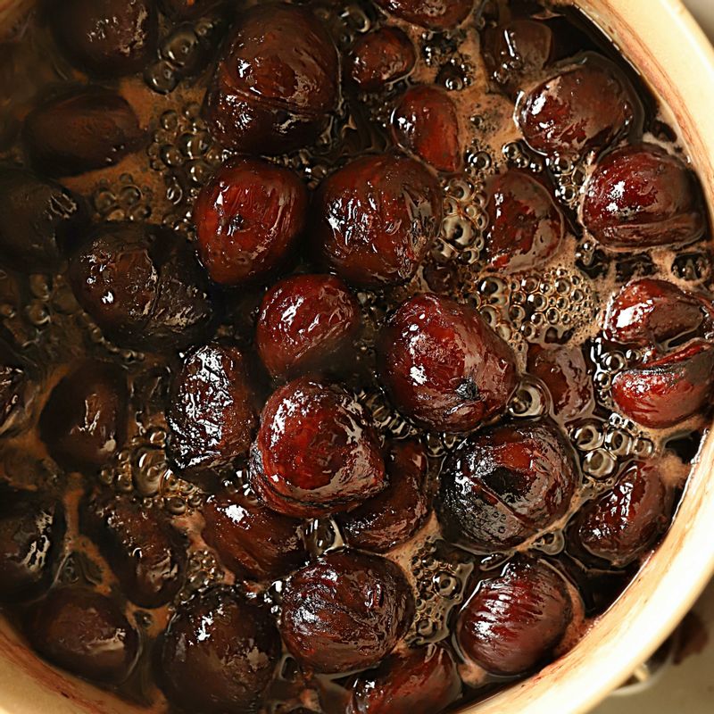 - 진한 달콤함이 필요한 날, 한 입에 쏙! 먹어도 맛있고, 그릭요거트나 바닐라 아이스크림과 함께 곁들여 먹어도 정말 맛있어요. 📝TIP 1. 밥 겉껍질을 까기 전에 미지근한 물에 반나절 정도 불리면 쉽게 껍질을 벗길 수 있어요. 📝TIP 2. 겉껍질을 제거한 밤을 베이킹 소다 물에 10시간 정도 담가두면, 속껍질의 쓴맛을 제거할 수 있답니다. 📝TIP 3. 간장을 넣을 때 럼이나 와인을 2큰술 정도 넣으면 더욱 깊은 풍미와 맛을 낼 수 있어요.