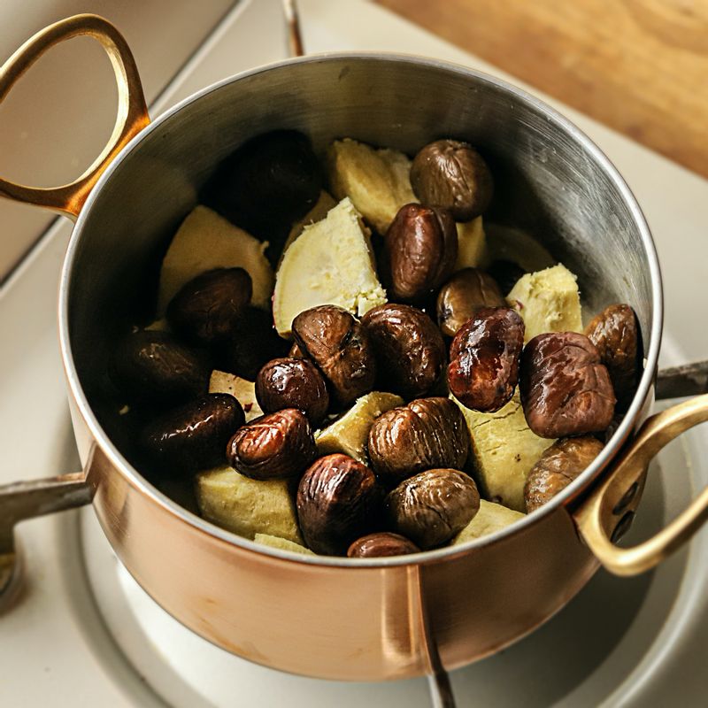 - 차가운 바람에 속이 허한 가을 아침에, 한 숟갈 두 숟갈 먹을 때마다 따뜻한 분위기를 한껏 느끼실 수 있을 거예요~ 📝TIP 1. 마지막 데코레이션을 위해 맛밤을 5-6알 정도 남겨주세요. 📝TIP 2. 수프는 중약불에서 천천히 끓이다가 농도가 걸쭉해지면 소금으로 간을 맞춰주세요.