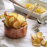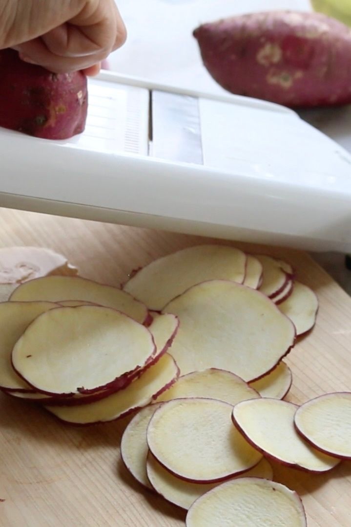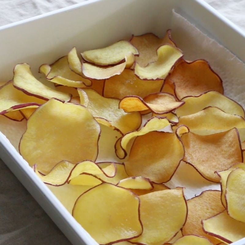- 최소한의 재료로 간단하지만 맛있게 고구마를 즐기는 방법! 바삭한 고구마칩을 만들어 보세요. 비타민이 풍부한 고구마 껍질을 제거하지 않고 껍질째 튀겨내 더욱 건강하게 즐길 수 있는 가을 간식이 될 거예요~