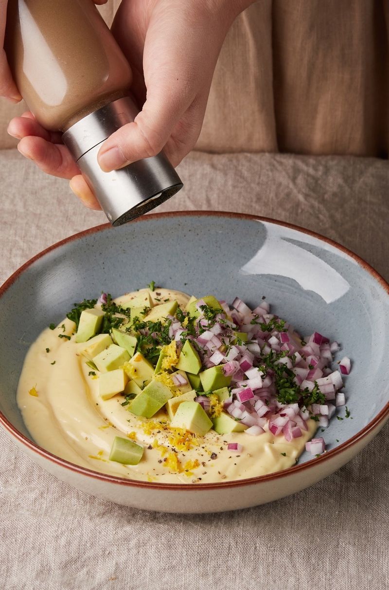 여기에 듬뿍 얹은 마요 소스가 느끼할 것 같다고요? 걱정 마세요! 상큼한 머스터드와 레몬 제스트를 넣어 느끼함 없이 조화롭게 드실 수 있을 거예요~ 📝TIP 1. 바삭한 식감을 더하고 싶다면 마지막에 잣이나 호두 등 견과류를 뿌려도 좋아요.