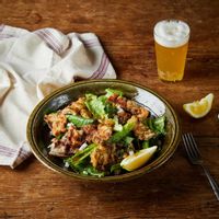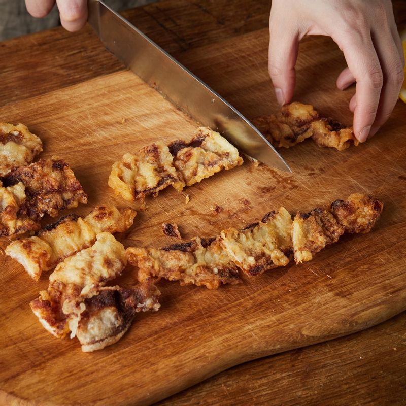 튀김이 조금 부담스럽다면 드레싱은 더욱 가볍게! 감칠맛만 살짝 더해주는 간장 오일 소스로 뿌려 완성해 주세요. 📝TIP 1. 튀긴 삼겹살은 기름을 한번 빼준 후, 한 김 식혀 썰어주면 쉽게 자를 수 있어요. 📝TIP 2. 대패삼겹 튀김 위에 레몬즙을 살짝 뿌리면 느끼함 없이 깔끔한 튀김을 즐길 수 있어요.