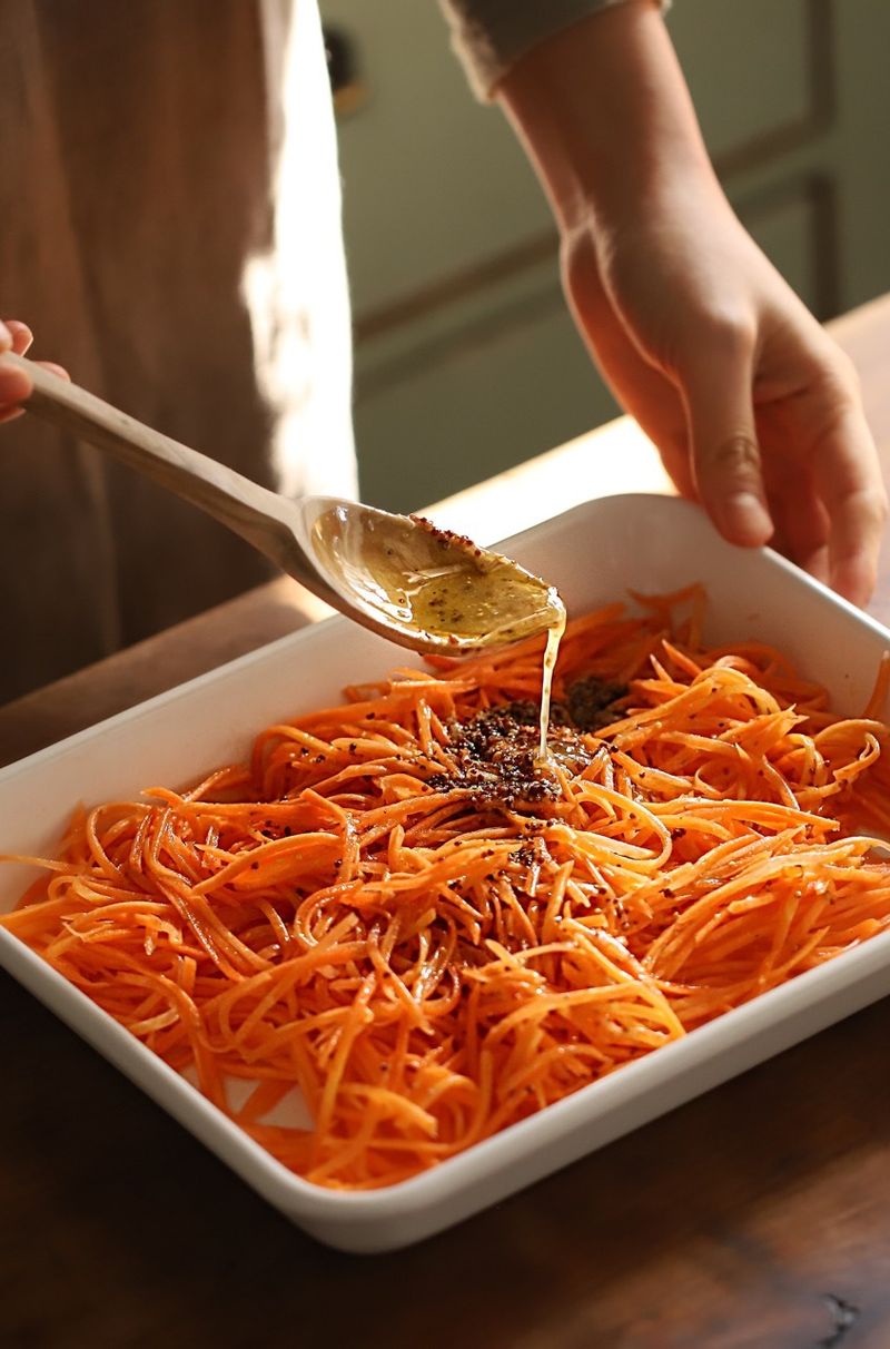 당근 맛이 달큰해지는 가을이면 꼭 즐겨야 하는 당근라페! 제철을 맞은 생당근을 새콤달콤한 오일 드레싱에 버무렸어요. 풍미 좋은 오일 드레싱 레시피는 한번 기억해두면 여기저기 활용하기 좋을 거예요~