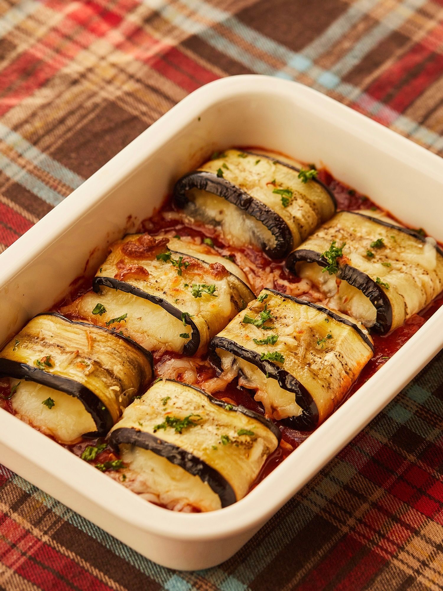 가지를 돌돌 말아 오븐에 구워 근사한 비주얼로 완성하면 초대 요리로 내놓아도 손색없을 거예요! 📝TIP 1. 기호에 따라 감자나 브로콜리 등의 채소를 추가해도 좋아요.