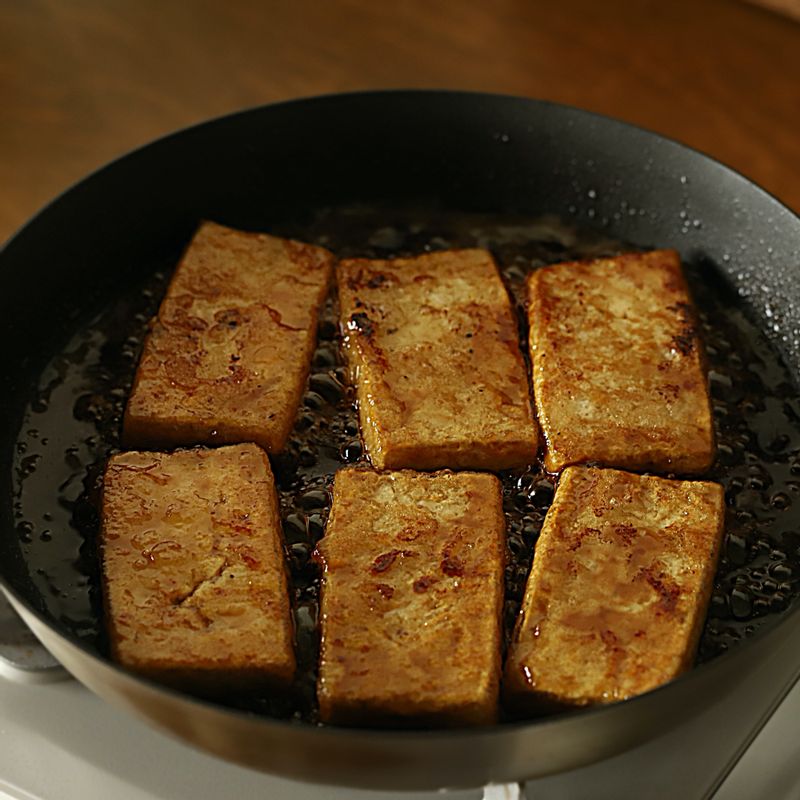 만드는 과정도 정말 간단하고 맛도 좋아 두부 덮밥 하나면 다른 반찬이 필요가 없어요! 📝TIP 1. 들기름을 두른 팬에 두부를 노릇하게 구워주면 훨씬 깊은 풍미를 낼 수 있어요. 📝TIP 2. 두부를 충분히 구워낸 다음 양념을 넣어야 먹음직스러운 비주얼이 나온답니다. 📝TIP 3. 취향에 따라 스크램블 에그를 추가해 함께 먹어도 정말 맛있어요.