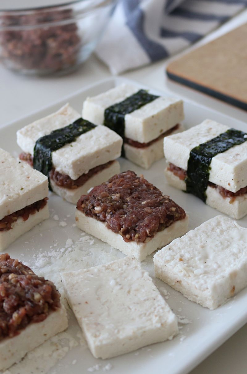 한입 가득 베어 물면 부드럽고 고소한 맛을 듬뿍 느낄 수 있을 거예요~ 📝TIP 1. 채 썬 대파는 찬물에 담가 매운맛을 제거한 후 물기를 제거해 주세요. 📝TIP 2. 소고기 대신 닭가슴살을 잘게 다져 한층 더 담백한 두부샌드조림을 만들 수 있어요.