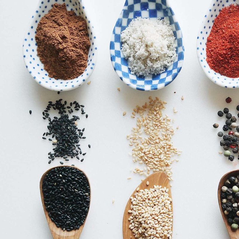 1. 시나몬파우더 계핏가루라고도 하며 단맛과 독특한 풍미를 더 해주는 향신료예요. 주로 케이크나 빵을 만들 때 많이 쓰여요. 2. 소금 국내산 천일염이나 많이 짜지 않고 미네랄이 풍부한 게랑드 소금을 사용하면 좋아요. 3. 고춧가루 한국 음식에 칼칼한 맛을 낼 때 빠질 수 없는 식재료입니다. 국내산 태양초를 빻아 만든 고춧가루를 사용한답니다. 4. 카레 가루 카레 가루의 주재료인 강황은 항산화, 항염증 효과가 있으며 기억력을 강화해주지요. 볶음밥이나 튀김 요리에 사용하면 풍미를 더하고 잡내를 없애줄 수 있어요. 5/10. 허브솔트 소금에 각종 허브를 첨가한 것으로 스테이크나 생선 요리에 곁들여 먹으면 음식의 풍미가 좋아져요. 6. 흑임자 검은 참깨를 이르는 것으로 각종 요리에 사용하면 보기에도 좋고 고소한 맛이 일품이에요. 두뇌 발달과 노화 방지 등의 효과도 볼 수 있답니다. 7. 볶은 참깨 참깨를 볶아서 쓰면 고소한 맛이 더욱더 살아난답니다. 각종 나물 요리나 무침 요리에 사용하거나 곱게 갈아서 국물 요리에 넣어도 좋아요. 8. 통후추 후추는 가루보다 통으로 된 것을 바로바로 갈아서 사용하면 향이 훨씬 좋아요. 돼지고기를 삶을 때는 통후추를 그대로 사용하면 편리해요. 9. 히말라야 소금 깊은 땅속에서 채굴하여 가공하지 않은 소금으로 자연 그대로의 미네랄이 풍부해요. 백화점 식품 매장에서 구입 가능해요.
