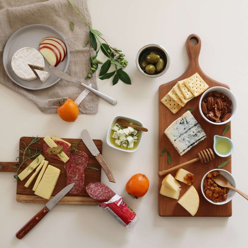 나무 도마는 칼질을 할 때 칼이 바닥에 닿는 느낌이 좋고 칼날 손상이 적어 즐겨 쓰는 편이에요. 결이 예쁜 나무 도마는 재료 손질을 할 때 뿐만 아니라 브런치와 홈파티 테이블 플레이팅에서 활용할 수 있어요.