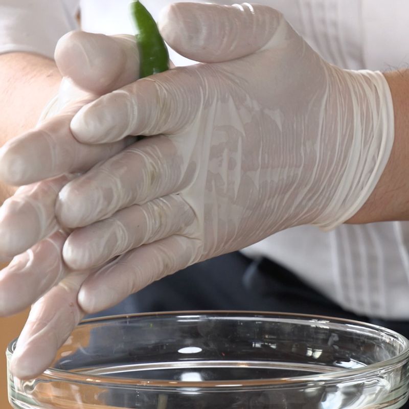 ① 고추의 꼭지 부분을 자른 후 손바닥으로 비벼 주세요.