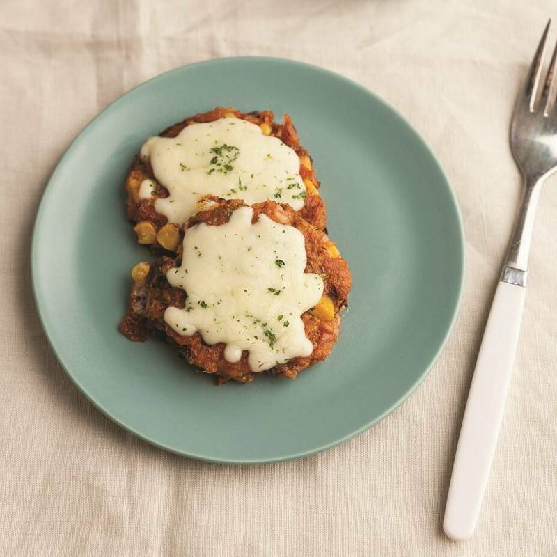 부침 반죽 재료를 잘게 다진 뒤 볼에 넣고 섞은 뒤 부침가루, 피자소스를 넣고 다시 섞어주세요. *Tip. 옥수수는 물기를 빼고 사용하세요!