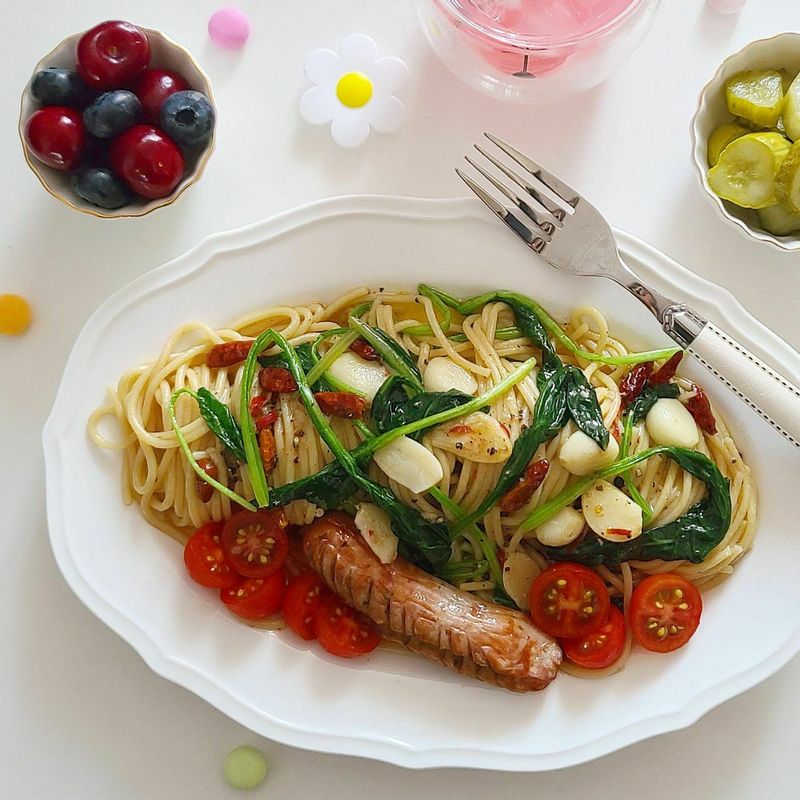 애매하게 남은 시금치 🥬 냉털용으로 딱 좋은 시금치파스타로 간단하지만 근사하게 아점을 즐겨봐요.