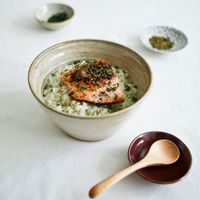 연어에 소금 후추로 간단히 간을 해주시고 잘 구워주세요✨ 밥위에 연어를 올리고 오차를 살살 부워주시면 된답니다🌼