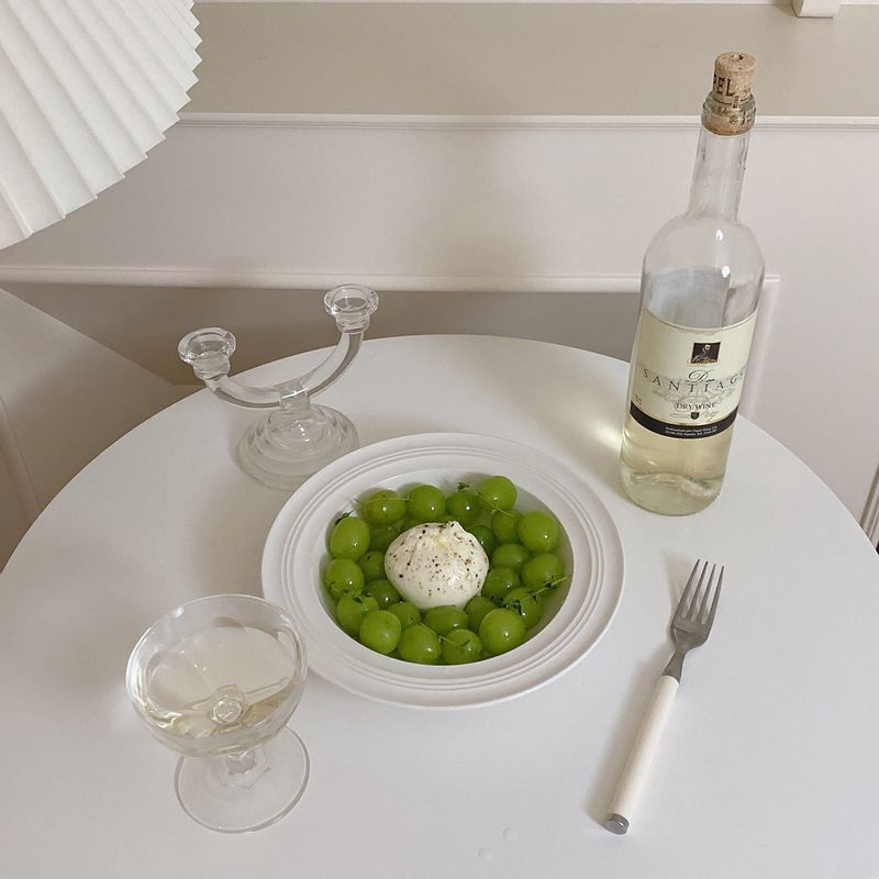 샤인 머스켓과 부라타 치즈에 올리브 오일을 뿌리고 소금과 후추를 살짝 뿌려 주면 상큼하면서도 고소한 샤인 머스켓 샐러드가 완성돼요 화이트 와인과도 꿀 조합이랍니다 #부라타샐러드 #부라타치즈 #샤인머스켓 #샤인머스켓샐러드 #와인안주 #와인 #치즈 #샐러드 #홈와인바 #네츄럴와인