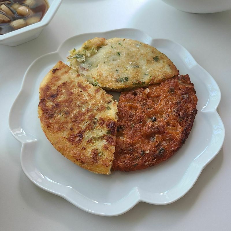 명절에 빼 놓을 수 없는 녹두전을 색다르게 먹어보았어요. 치즈맛 고추맛 고기맛 등 다양한 녹두전 먹는 재미가 있네요. #무자기 #막걸리안주 #명절음식 #녹두전