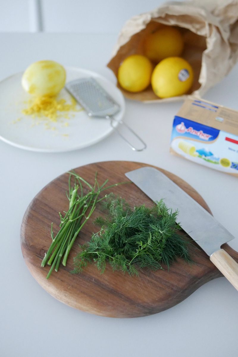 잘 버무려진 레몬 딜 버터를 종이호일에 잘 말아서 냉장고에 1시간 정도 넣었다가 꺼내주면 끝 !