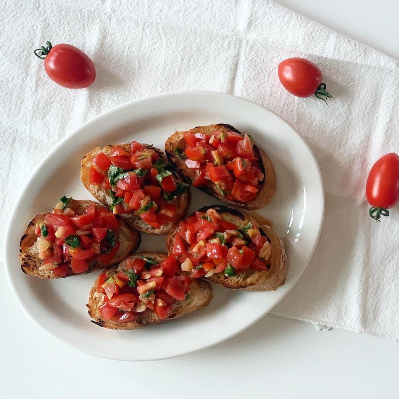 보기도 좋고 맛도 좋은 토마토 브루스케타에요. 고소한 빵과 상큼한 토마토가 너무 잘 어울려서 아이들도 잘 먹어요. #토마토브루스케타 #오픈샌드위치 #홈스토랑 #홈브런치 #샐러드