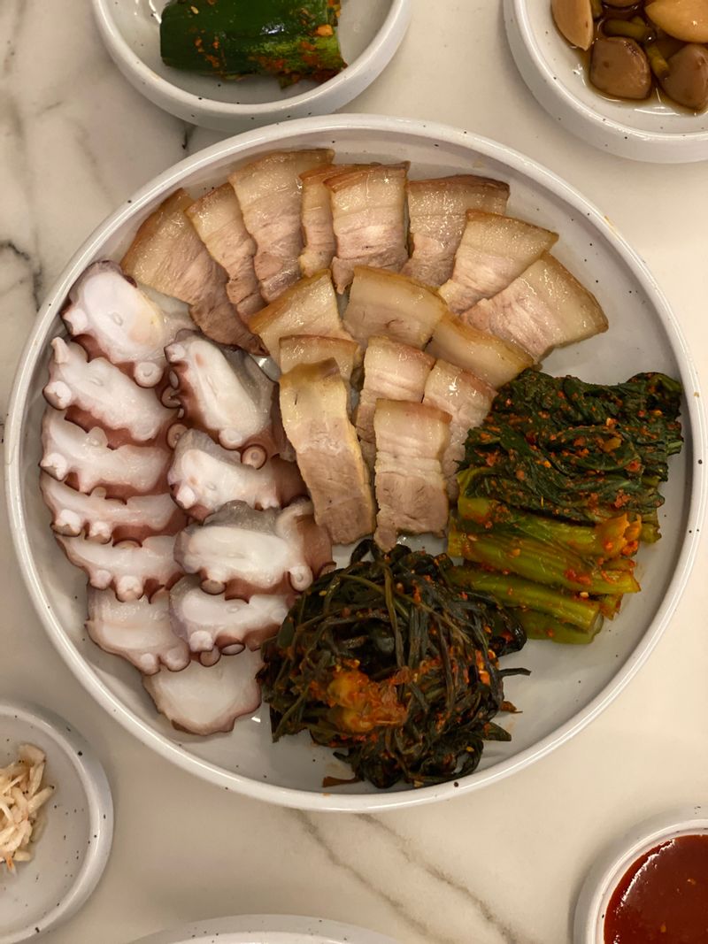 맛있는 갓김치랑 고들빼기김치가 있어서 수육삶았어요. 문어숙회랑 같이 곁들여 삼합으러 먹었더니 별미네요. 이제 김장철이 돌아오네요. 맛있는 김치에 돼지고기 수육 궁합 좋은 맛있는 음식이네요 😋