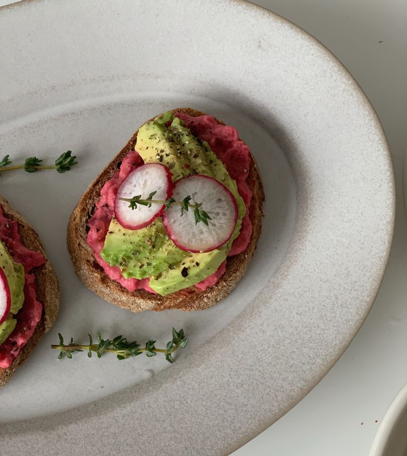 비트 후무스 + 아보카도 오픈 샌드위치예요 비트 후무스 만들어보니 생각보다 작은 비트 덩어리가 오히려 씹히는 느낌이 좋아서 조금 덜 갈아서 넣었어요 후무스에 간이 되어 있어서 소금과 후추만 뿌려서 먹어도 되지만 저는 홀그레인머스터드 + 꿀 + 마요네즈 이 만능 조합 소스를 곁들여먹었어요 #후무스 #오픈샌드위치 #샌드위치 #비트 #아보카도
