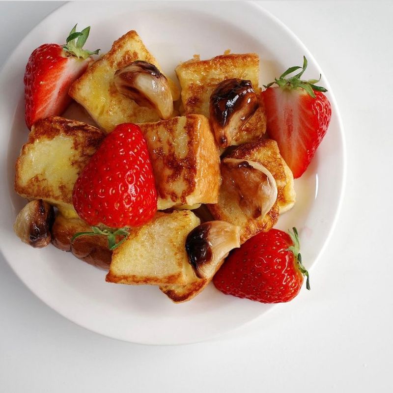 빵을 잘라서 프렌치토스트를 만들면 먹기좋고 보기에도 예쁘다 딸기도 같이 올려보았다 상큼상큼 #홈카페 #디저트 #토스트 #프렌치토스트 #홈브런치 #브런치 #딸기
