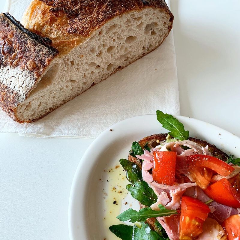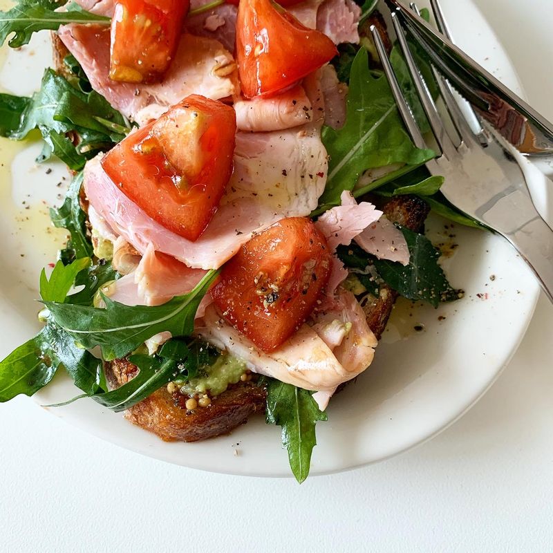 쫄깃한 사워도우 위에 홀그레인머스타드, 아보카도딥,루꼴라,잠봉,얹어 오픈 샌드위치 🥪 #오픈샌드위치 #샌드위치 #잠봉뵈르샌드위치 #브런치 #홈카페