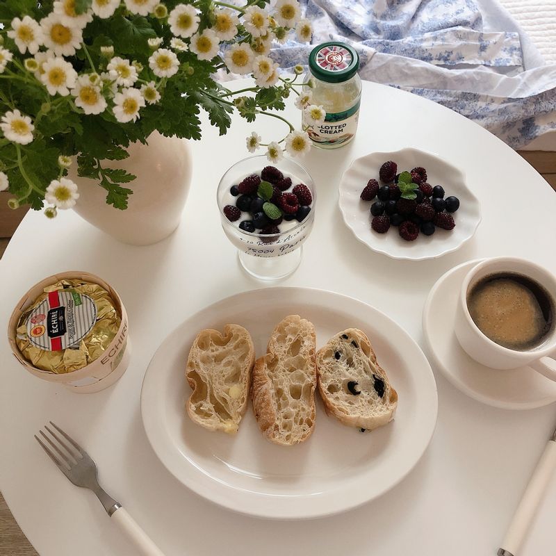 한달 기다려야 받을 수 있는 유동부 치아바타와 산딸기 그릭요거트, 아메리카노로 소소하게 차린 주말 브런치🍽🌷 #브런치 #홈카페 #치아바타 #커피 #그릭요거트 #간식