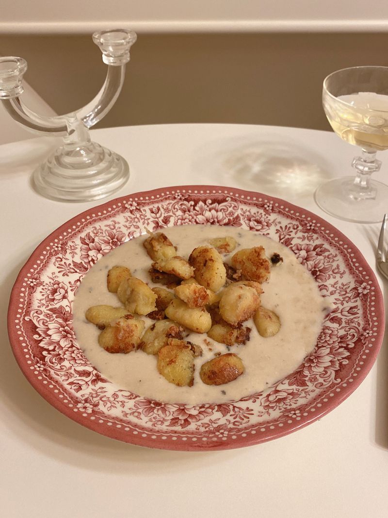 폰타나 스프로 감자 뇨끼를 만들어 봤어요 와인을 곁들이면 내츄럴 와인바에서 뇨끼를 먹는 기분을 집에서도 간편하고 저렴하게 느낄 수 있어요🥂 #뇨끼 #감자 #와인 #와인안주 #감자뇨끼 #홈와인바 #안주