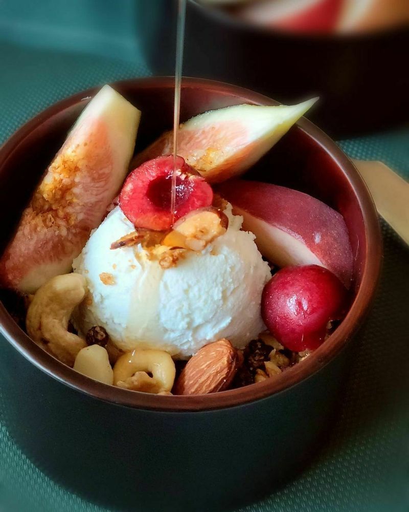 그릭요거트에 무화과, 그래놀라, 견과류를 곁들이고 먹기직전에 꿀이나 메이플시럽을 뿌려주면 실패없는 디저트 완성이죠♡ #그릭요거트 #무화과 #디저트 #홈카페