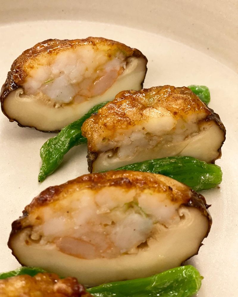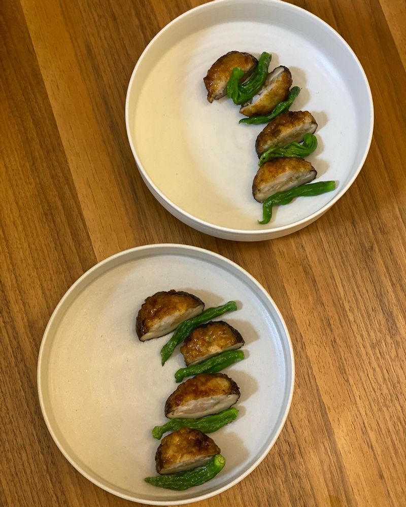 표고버섯에 새우속을 채워 튀겨서 꽈리 고추랑 곁들여서 만든 새우표고조림 입니다. 손님 초대 할때내면 다들 좋아하는 메뉴예요. #초대음식 #한식 #새우표고조림