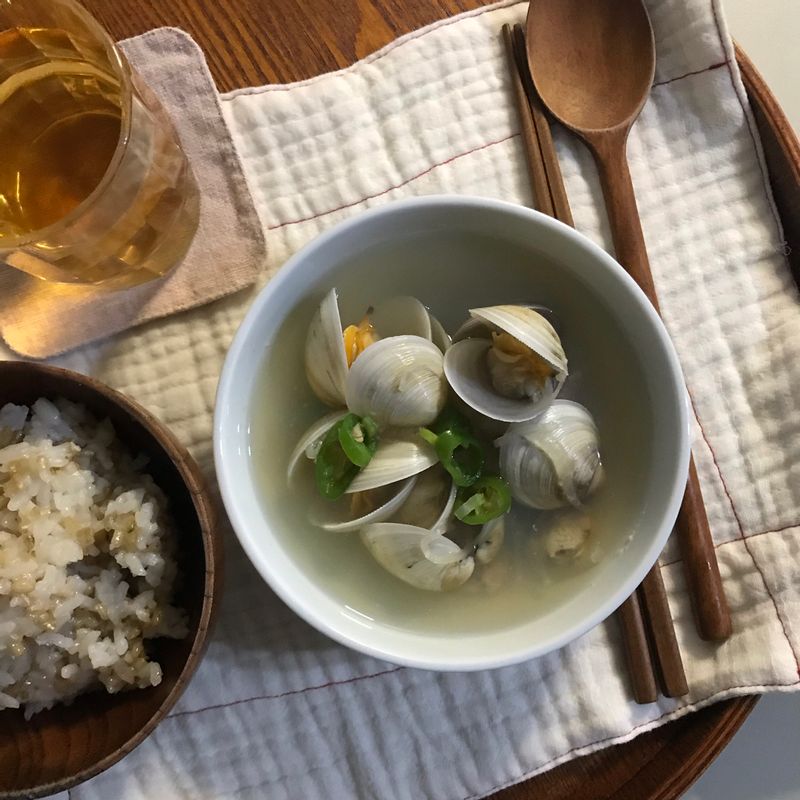 간결하고 소박한 한끼🌈 , 모시조개와 무우를 채썰어 함께 넣고, 마지막 땡초로 마무리 , 이 소박한 한끼, 뚝딱 한그릇, 밥 , 온기가득한 저녁식사 #한그릇요리 #해산물 #모시조개 #조개탕 #온더테이블 #혼밥 #집밥