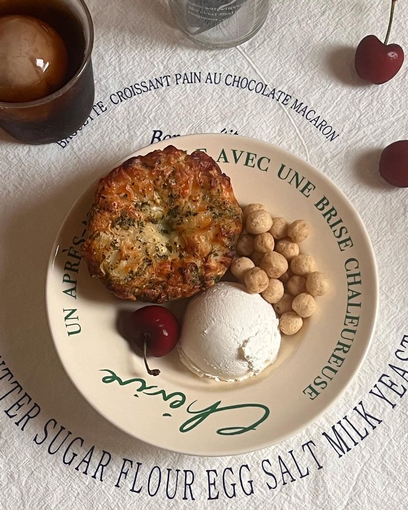 위에 모짜렐라 치즈 + 구운 양파채 올라간 도넛 정말 최고 🤍 #홈카페