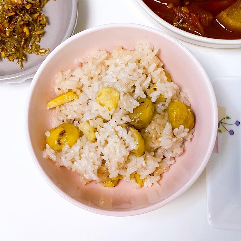 밤밥에 갈치조림 ☺︎︎ 밤넣어 한 밥은 달달하니 밥만먹어도 맛있어요:) 갈치와 무조림은 말할것도 없쥬😉