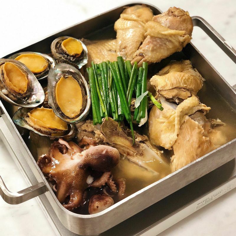 요즘 많이 피곤해하는 남편을 위해 전복 가득 넣어 해신탕을 해서 먹었어요 너무너무 좋아하는 남편보니 저도 기분이 좋네요💛 #몸보신 #배추겉절이 #전복삼계탕 #해신탕 #전복