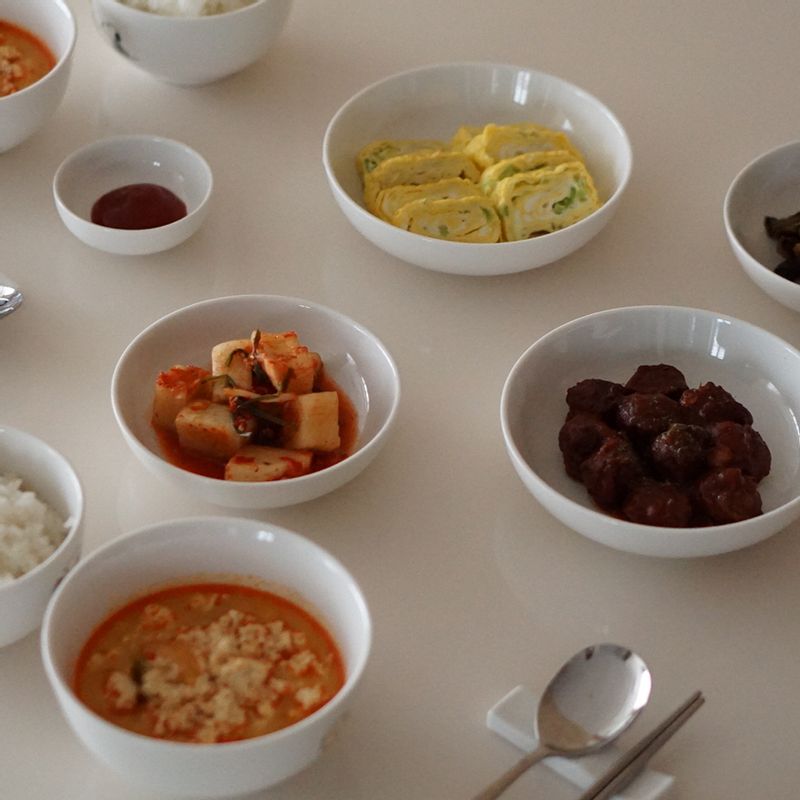 날이 추워져 칼칼한 국이 땡기네요:) 순두부찌개 보글보글 끓여 차려봤어요! #한식 #순두부찌개 #미트볼 #계란말이 #밥