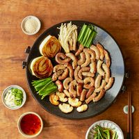 곱창킬러는 행복하네요 :) 집에서 배 터지게 먹어보는 소곱창 야채랑 소스까지 담겨있는 쿠킹박스 ! 콩나물만 후다닥 무쳐서 소곱창구이 해먹었어요 :) #소곱창 #곱창구이 #소곱창구이