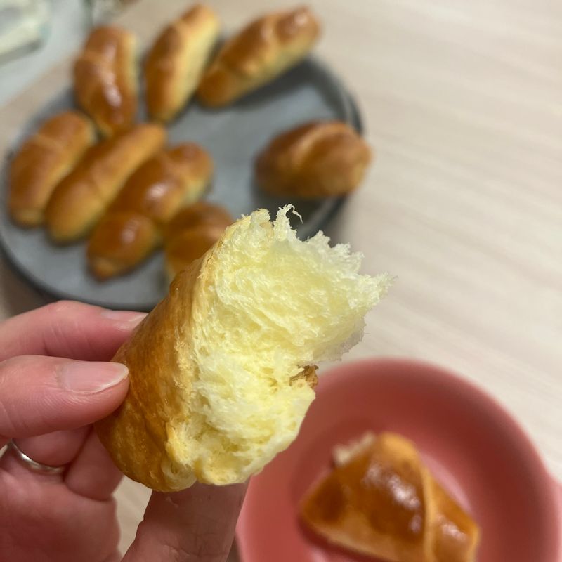 요즘 부쩍 홈베이킹에 재미가 들였답니다. 식빵은 거의 이틀에 한번 굽고, 아이 간식을 만들어주고 싶어 도전해본 버터롤 이에요 . 우유대신 두유와 버터양을 조금 줄여서, 무겁지 않게 만들어보았답니다 :) 모양은 좀 엉성하지만, 딸아이가 밀대로 열심히 장난치며 밀어줬으니 그 손맛이 첨가되어 더 맛있나봐요 😂 아이와 함께 하는 베이킹 한번 도전해보세요 :) #버터롤 #홈베이킹 #아이와함께하는베이킹 #빵굽는엄마