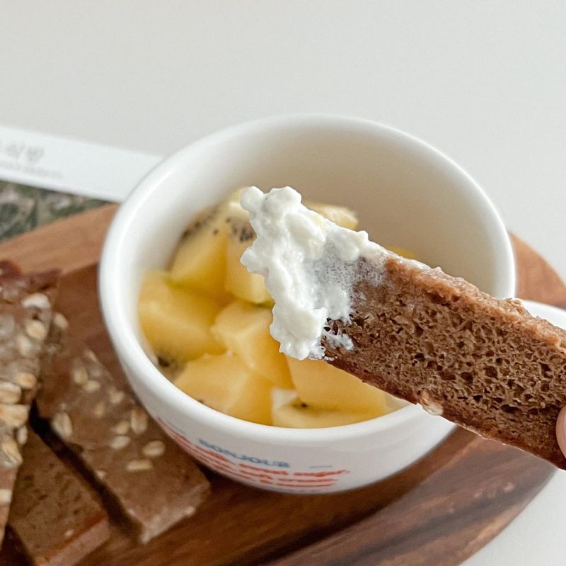 골드키위 요거트볼에 100% 호밀식빵🍞 묵직하고 구수한 호밀식빵 구워서 그릭요거트에 찍어먹으면 짱맛! 요렇게 담백하고 살짜콩 시콤 구수한맛 너무 좋아요 통곡물 100% 건강하고 맛있고〰️☺️ #호밀식빵 #골드키위 #그릭요거트 #요거트볼 #홈카페