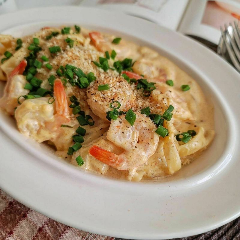 우리가 사랑하는 그 맛 🦐새우크림파스타🦐 . ✍🏻재료 올리브오일, 버터, 딸리아뗄레, 훈제파프리카 파우더 마늘, 양파, 페페론치노 새우, 치킨스톡, 굴소스, 생크림, 우유, 쪽파, 빵가루 ✍🏻 1. 물에 소금 넣고 면을 익혀주세요 *물1L : 파스타100g : 소금10g 2. 스텐팬에 빵가루를 볶아줍니다 은은한 황금빛이 올라오면 따로 옮겨둡니다 3. 팬에 올리브오일 둘러주고 버터도 같이 녹여주세요 약불에 편으로 썬 마늘을 볶아주고 마늘향이 올라오면 양파를 넣고 같이 볶습니다 4. 양파가 투명해지면 페페론치노를 넣어주세요 맵게 드시고 싶으면 잘게 해서 넣어주시면 됩니다 5. 새우를 넣고 같이 볶아주세요 반쯤 익었을 때 치킨스톡, 굴소스를 반스푼씩 넣고 면수 세국자 정도 넣어 잘 섞어주세요 6. 쪽파 흰부분 송송 썰어넣고 생크림, 훈제파프리카 파우더를 넣어 잘 섞어준 뒤 잘 익은 딸리아뗄레를 팬에 넣고 소스와 잘 어우러지게 섞어줍니다 우유로 농도를 맞춰주세요 7. 접시에 플레이팅 해주세요 준비한 빵가루를 위에 뿌려주시고 후추로 마무리 해줍니다