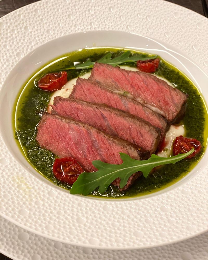감자퓨레와 그린소스를 곁들인 스테이크입니다. 이 조합 정말 사랑합니다 😋😋 #스테이크 #파티음식 #연말음식 #크리스마스 #홈파티