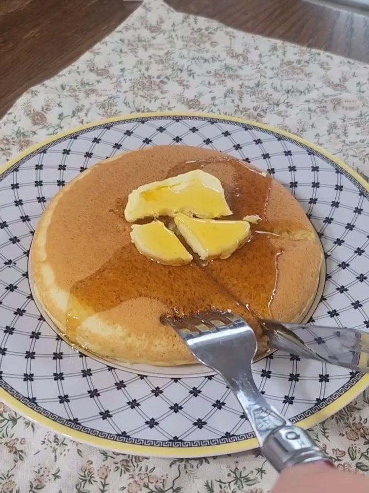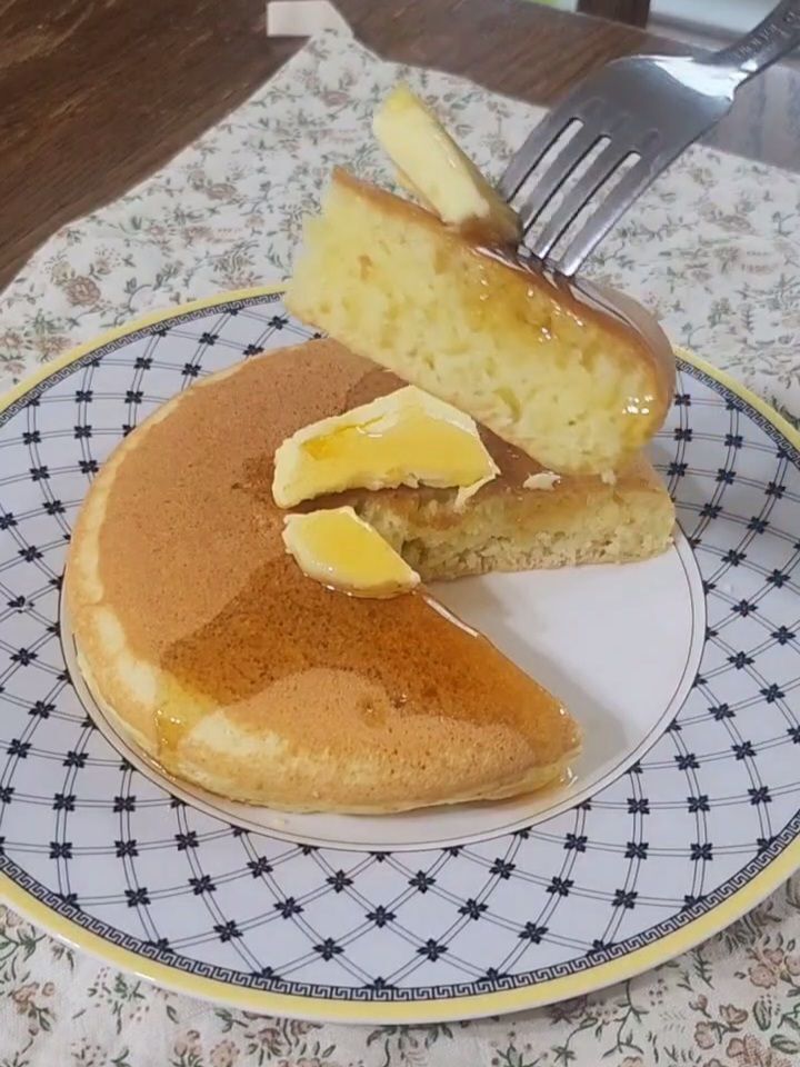 폭신폭신 팬케이크 #노믹스 시판용 아닌 집에 있는 재료로 만든 팬케이크에요. 약불에 천천히 익혀주면 예쁘게 구워져서 너무 맛있어요. #홈스토랑#홈멩드#팬케이크