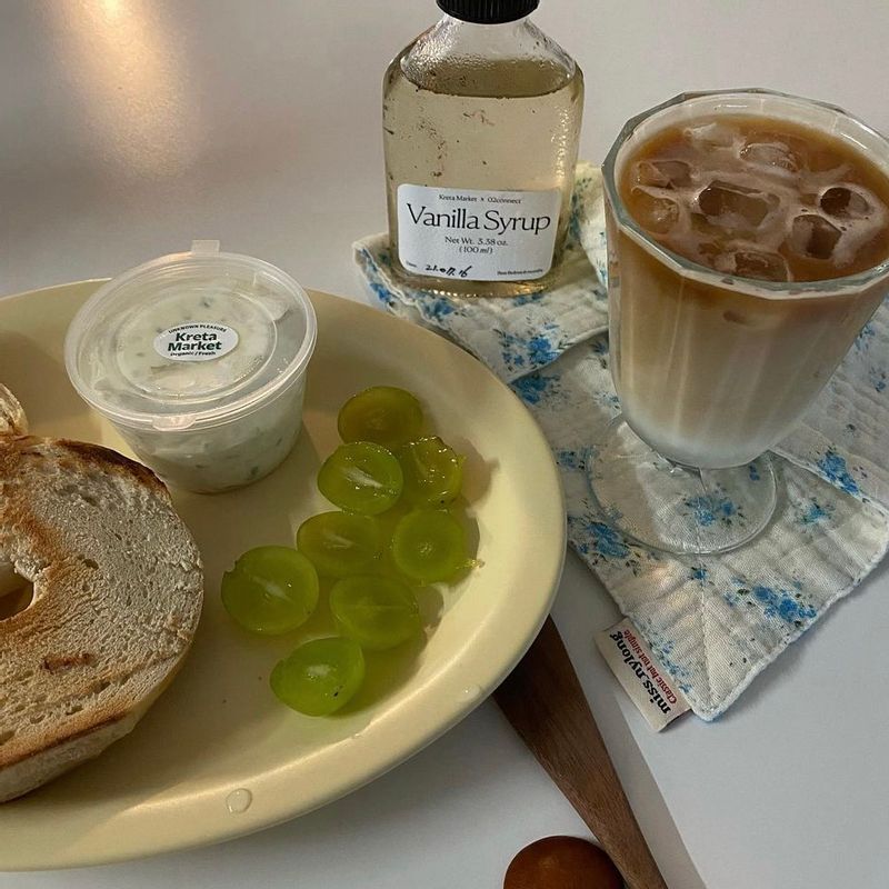 바-삭하게 구운 베이글에 쪽파크림치즈💚 #홈카페 #베이글 #쪽파크림치즈 #크림치즈 #바닐라라떼