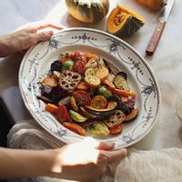 요즘 자주 먹는 채소구이예요 레시피라고 할수 없지만 단호박, 감자, 적양파, 방울토마토, 당근, 파, 파프리카, 아스파라거스, 옥수수 등을 먹기 좋게 잘라서 올리브오일+소금+후추를 뿌려 예열된 오븐 180도에 2-30분정도 구워주면 끝이예요 전 새로 들인 스타우브 주물접시에 구웠더니 그대로 플레이팅 하기도 너무 예쁘고 아주 먹기 좋게 구워졌어요 😊🙏🏻 다음번엔 우리의식탁 레시피 뿌리채소샐러드의 소스도 만들어 먹어보려해요 #채소구이 #채소샐러드 #오븐구이 #채소요리